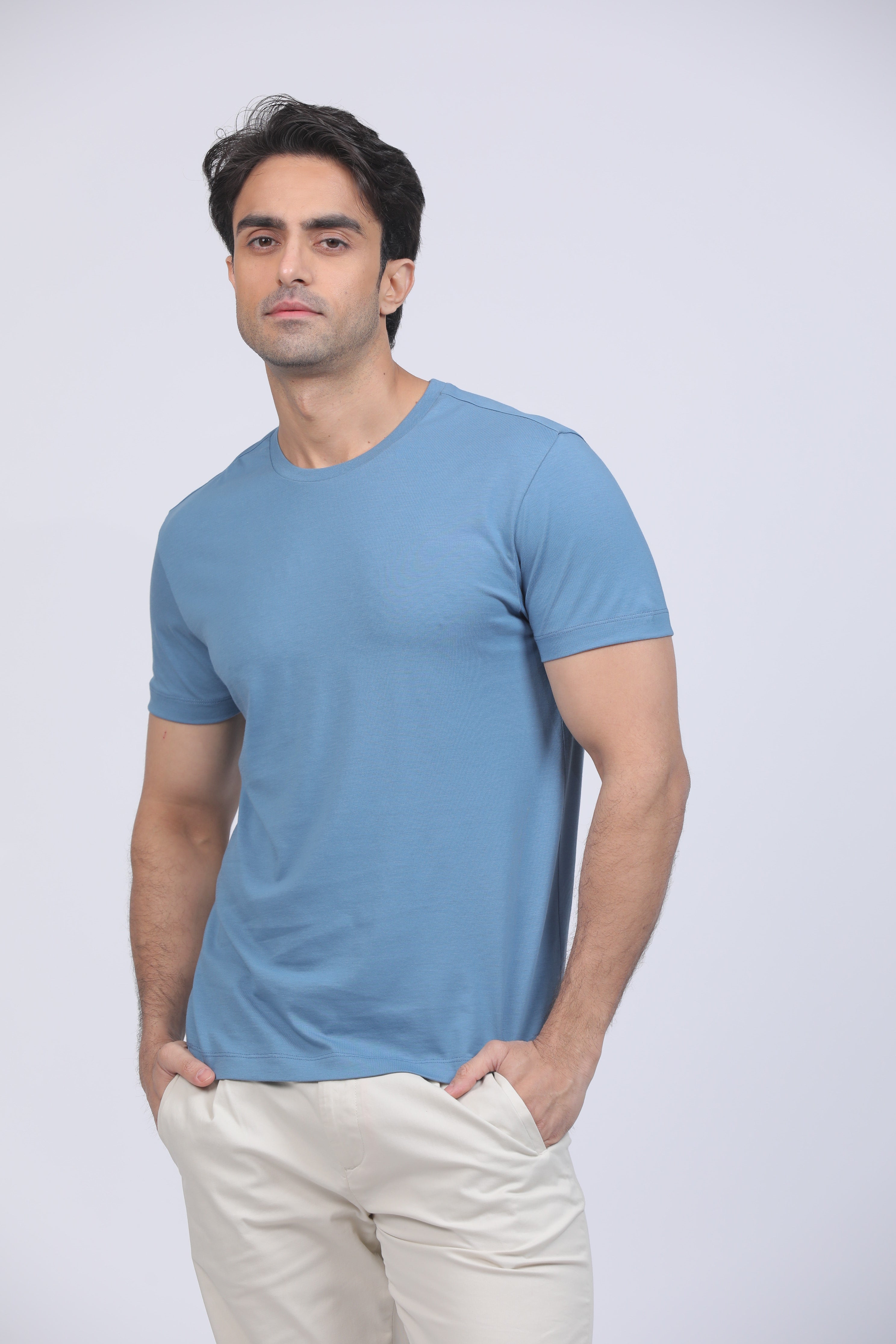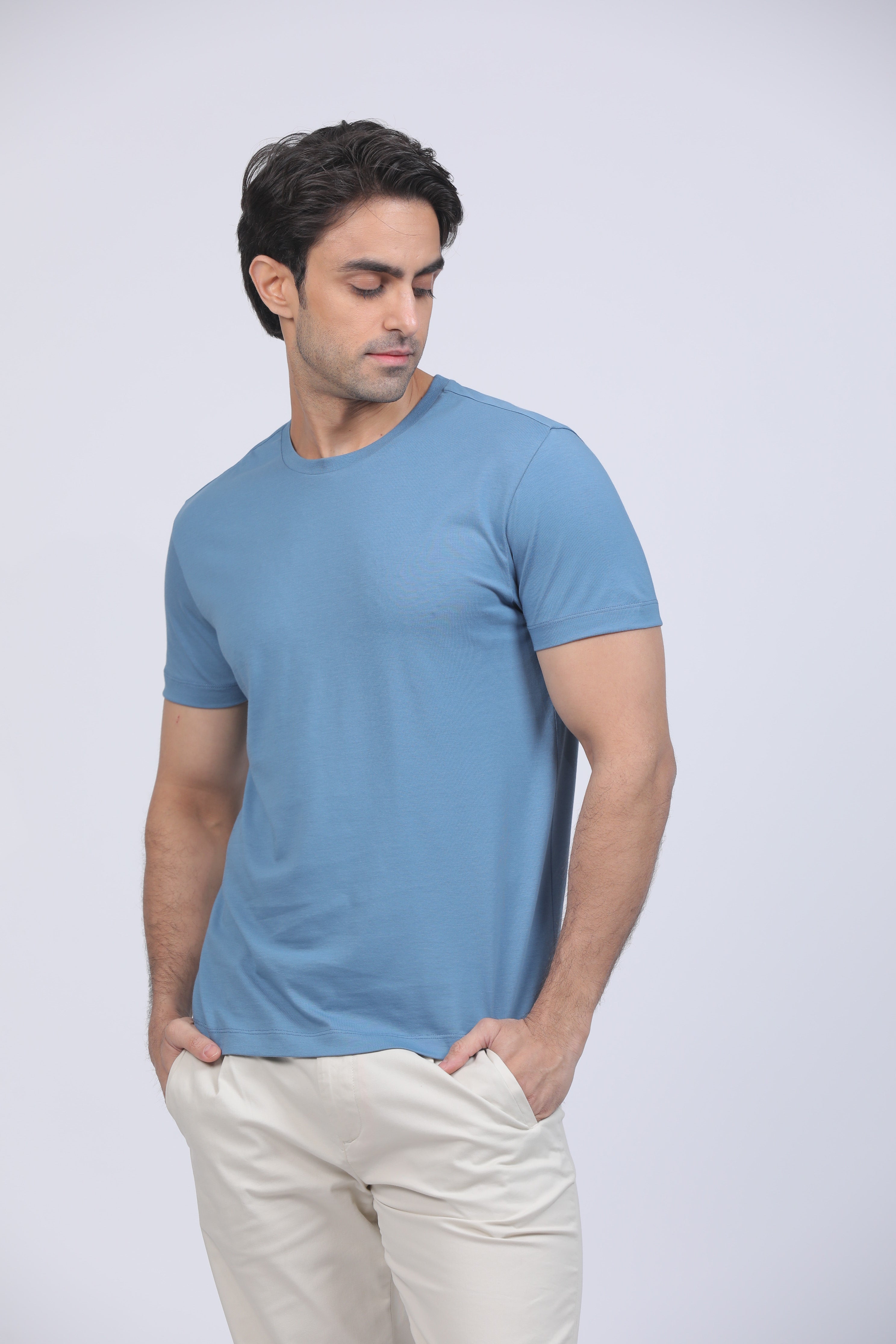 Dusty Blue Premium Supima Crew Neck Tee